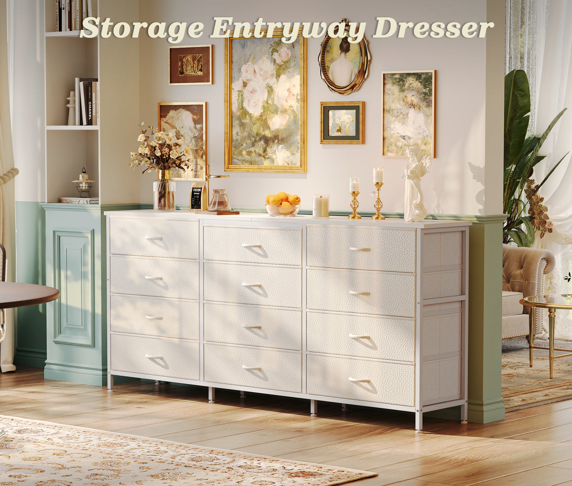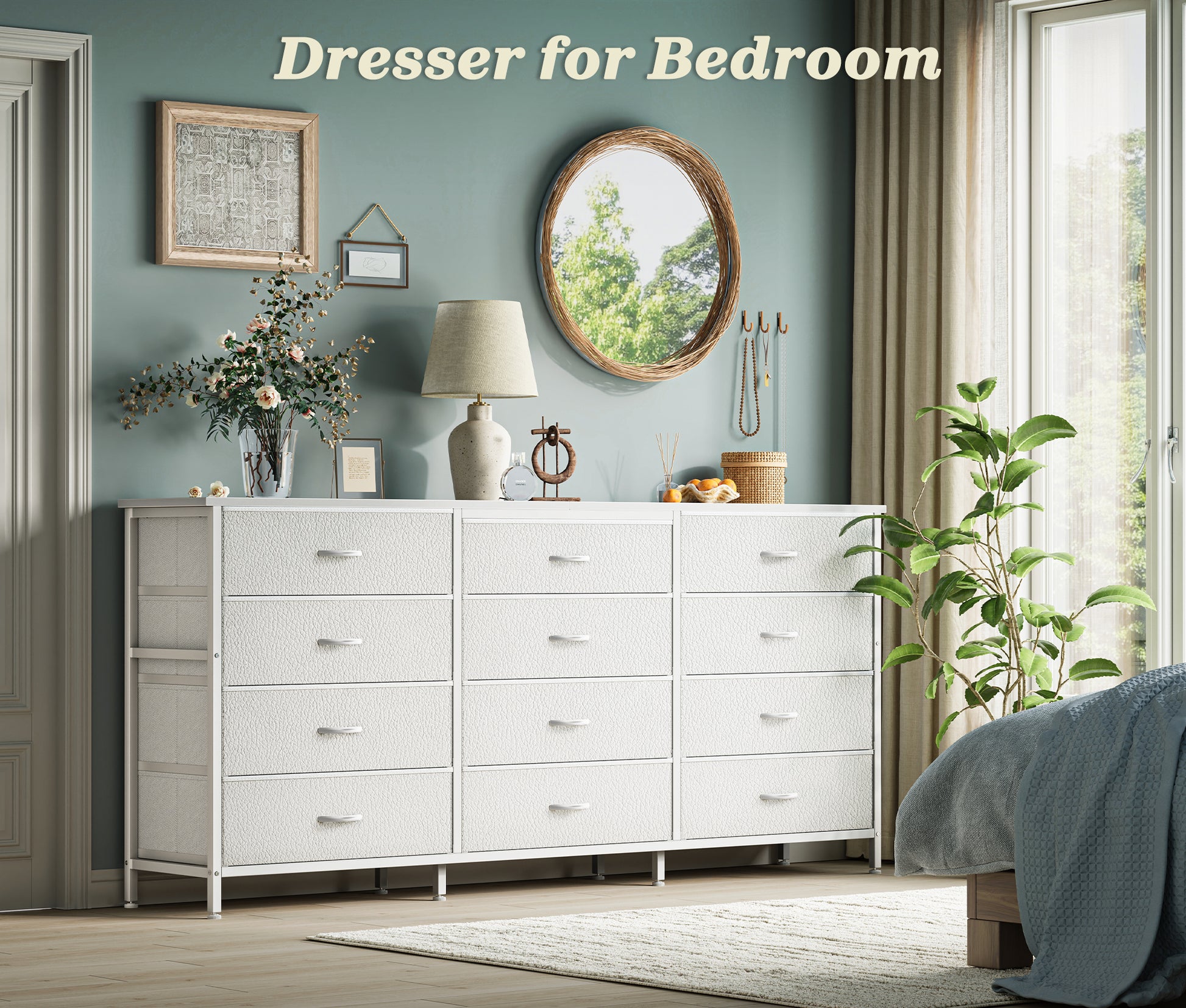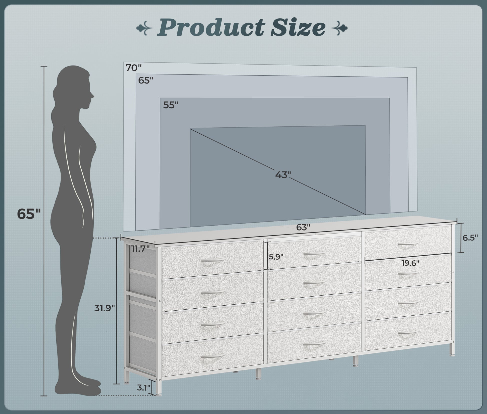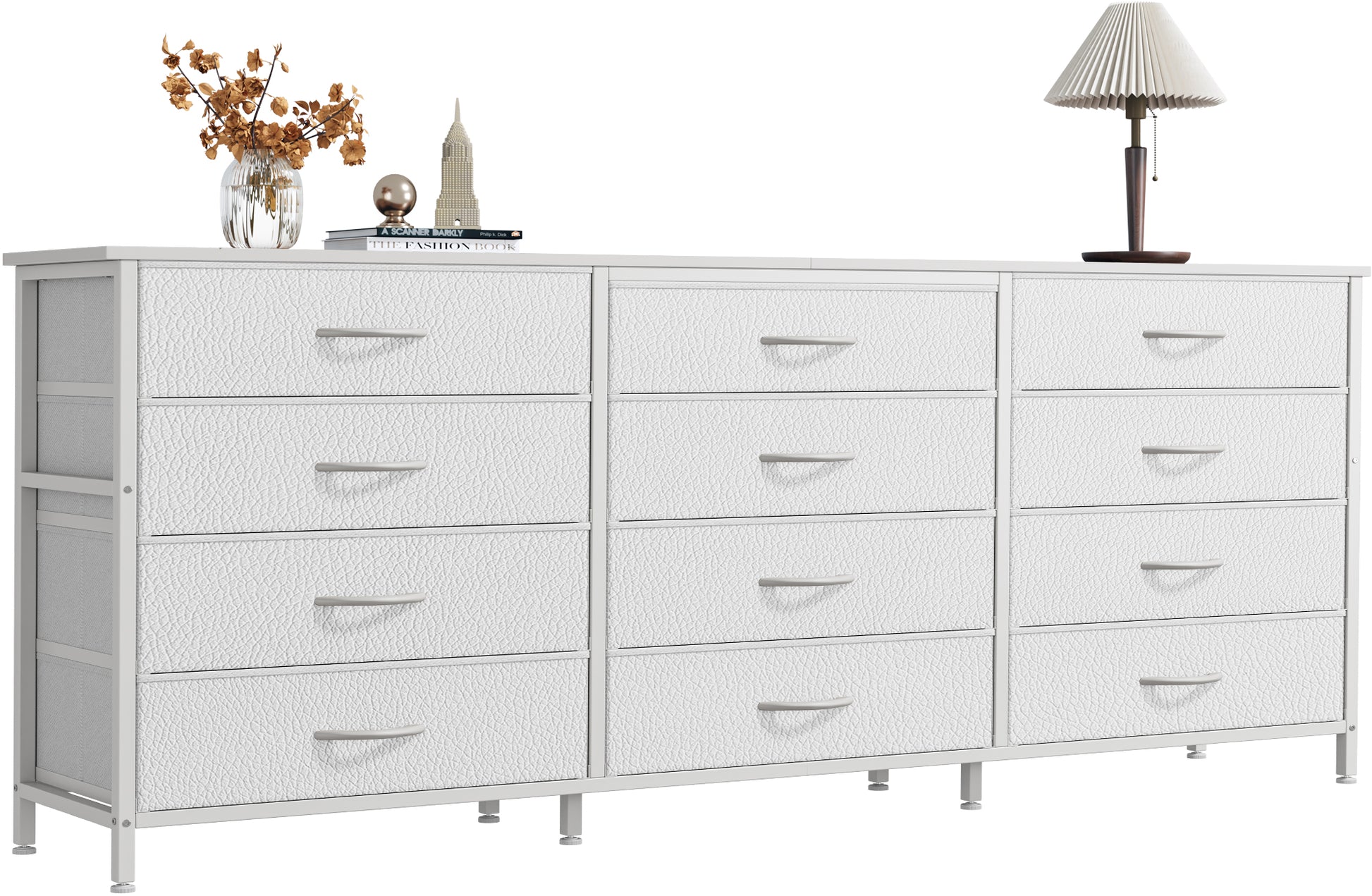 Huuger 63 Inch Long Dresser for Bedroom, TV Stand for 65, 70 Inch TV, 12 Drawer Dresser for Closet, Chest of Drawers, Large Fabric Drawers for Living Room, Media Console with Storage, White
