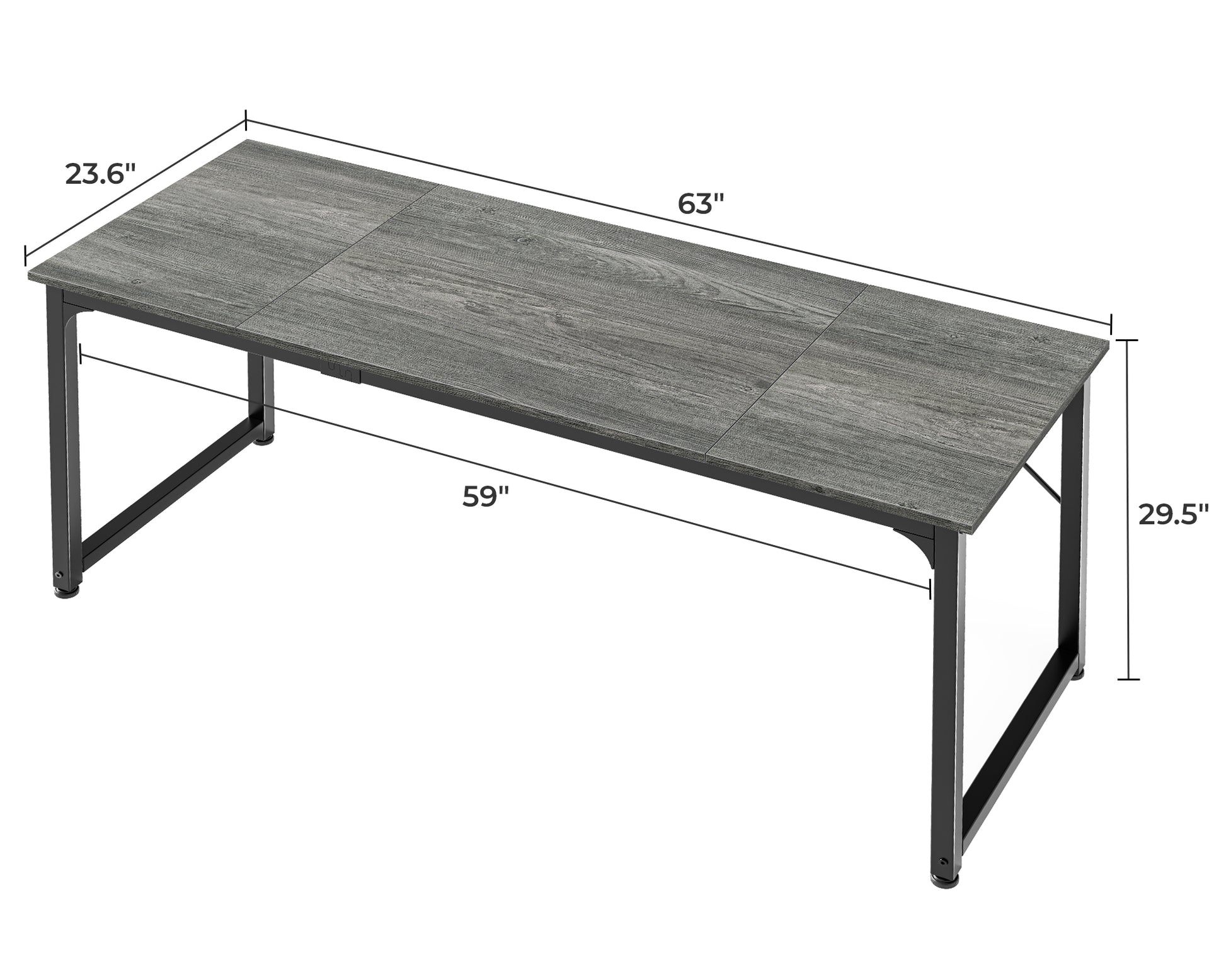 - 【Simple Desk】Enjoy a simple yet spacious work space with this sleek grey desk. Measuring 63''x23.6''x29.5'', it is the perfect solution for your study, kid's room, or home office. With a wide desktop, it accommodates your computer, calendar, lamp, and other essentials, leaving enough room to enjoy a cup of coffee
