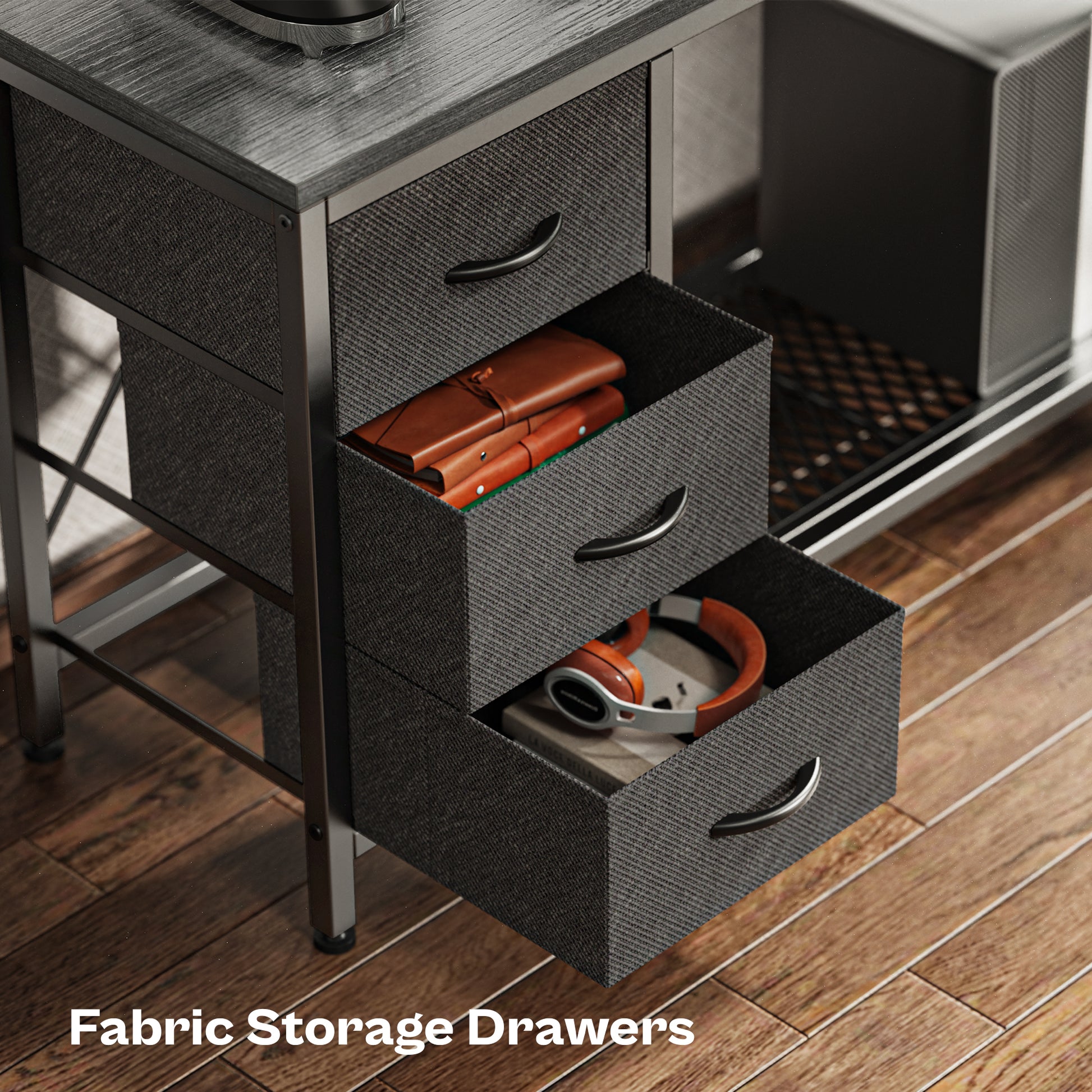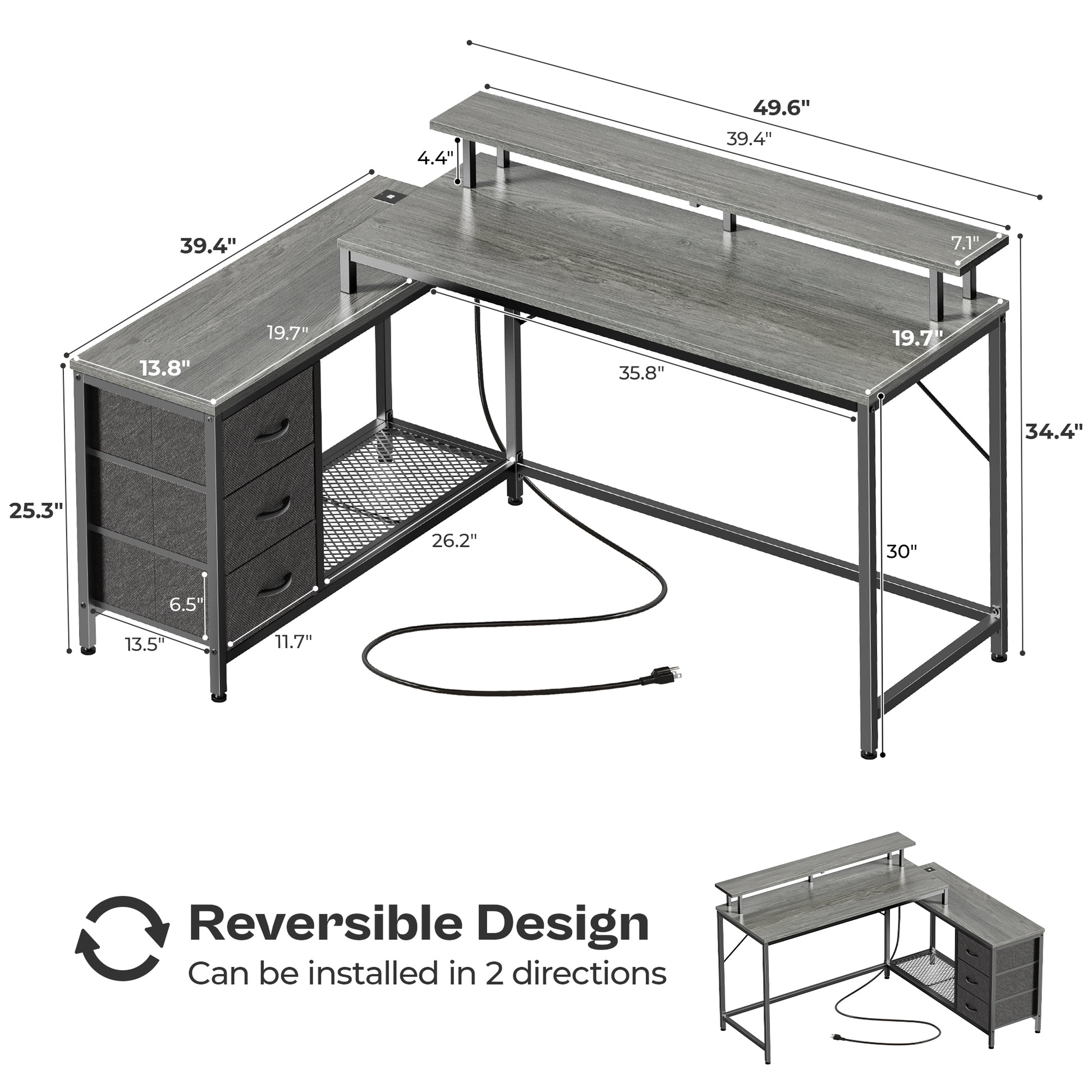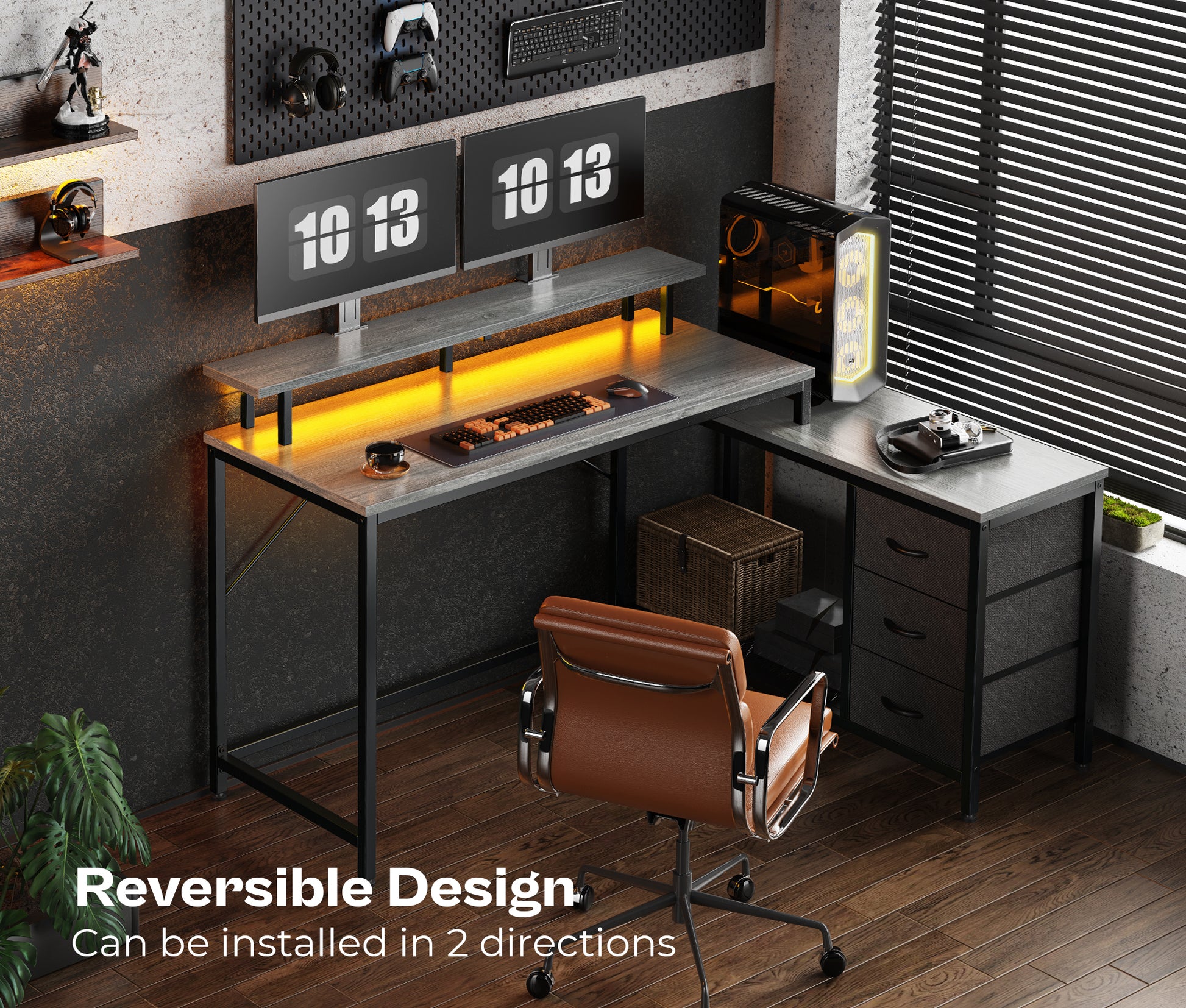 - 【REVERSIBLE L SHAPED DESK】: Install the fabric drawers on the right or left side to fit your layouts. The L desk easily surrounds you with all office items and suits small corners, fully utilizing the corner space. Perfect office desk, gaming pc desk, writing desk or study desk for home space