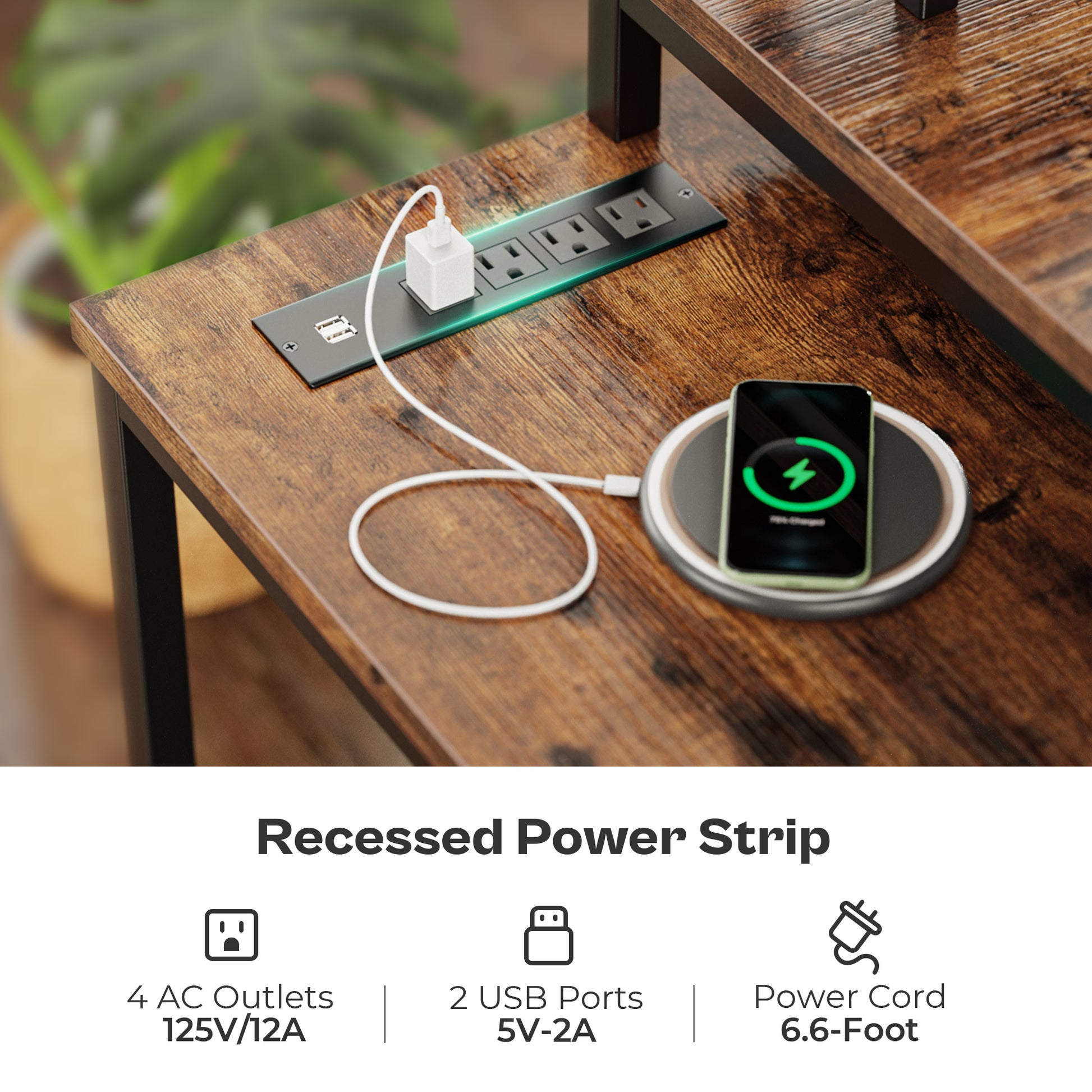 - 【POWER OUTLETS & MONITOR STAND】: 4 AC outlets and 2 USB ports are attached to the desktop of the desk with shelves, allowing you to charge your printer, gaming or office devices close at hand. And it also helps to declutter the messy and tangled wires. The monitor stands on the corner computer desk elevate your lines of eye to a higher level to avoid spine, neck pain whenever working or gaming
