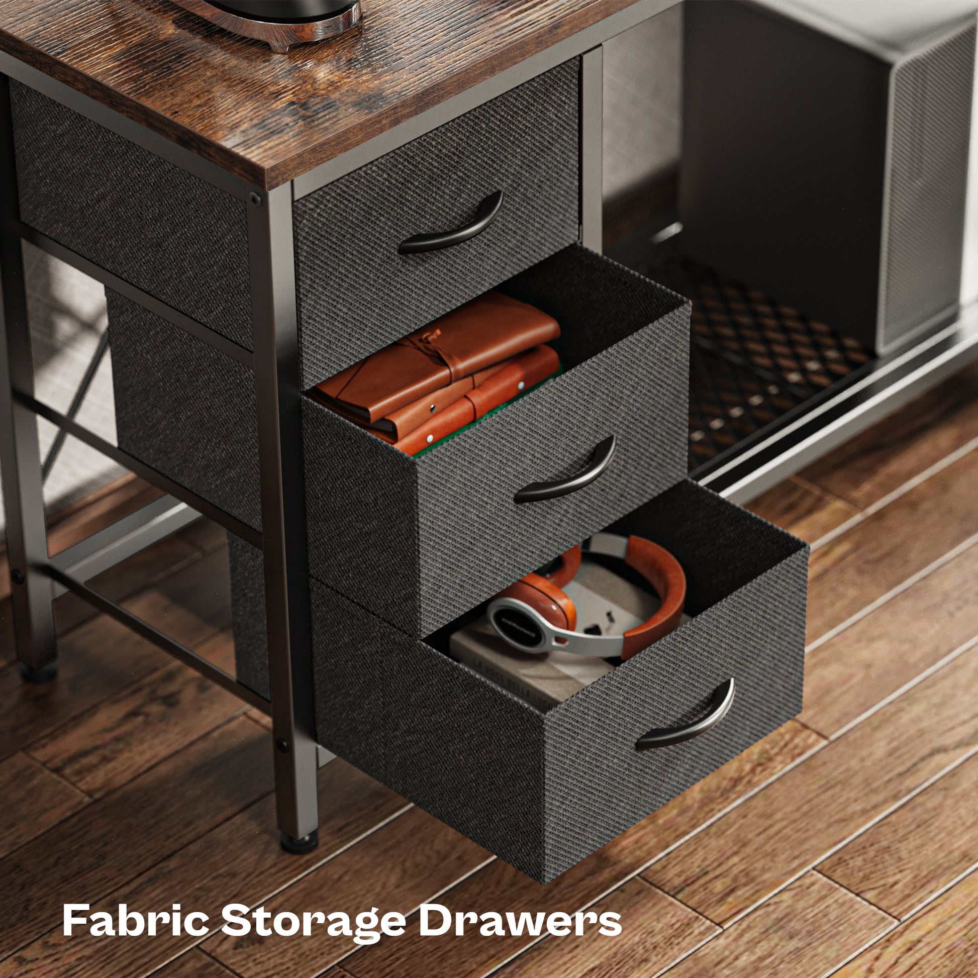 - 【REVERSIBLE L SHAPED DESK】: Install the fabric drawers on the right or left side to fit your layouts. The L desk easily surrounds you with all office items and suits small corners, fully utilizing the corner space. Perfect office desk, gaming pc desk, writing desk or study desk for home space