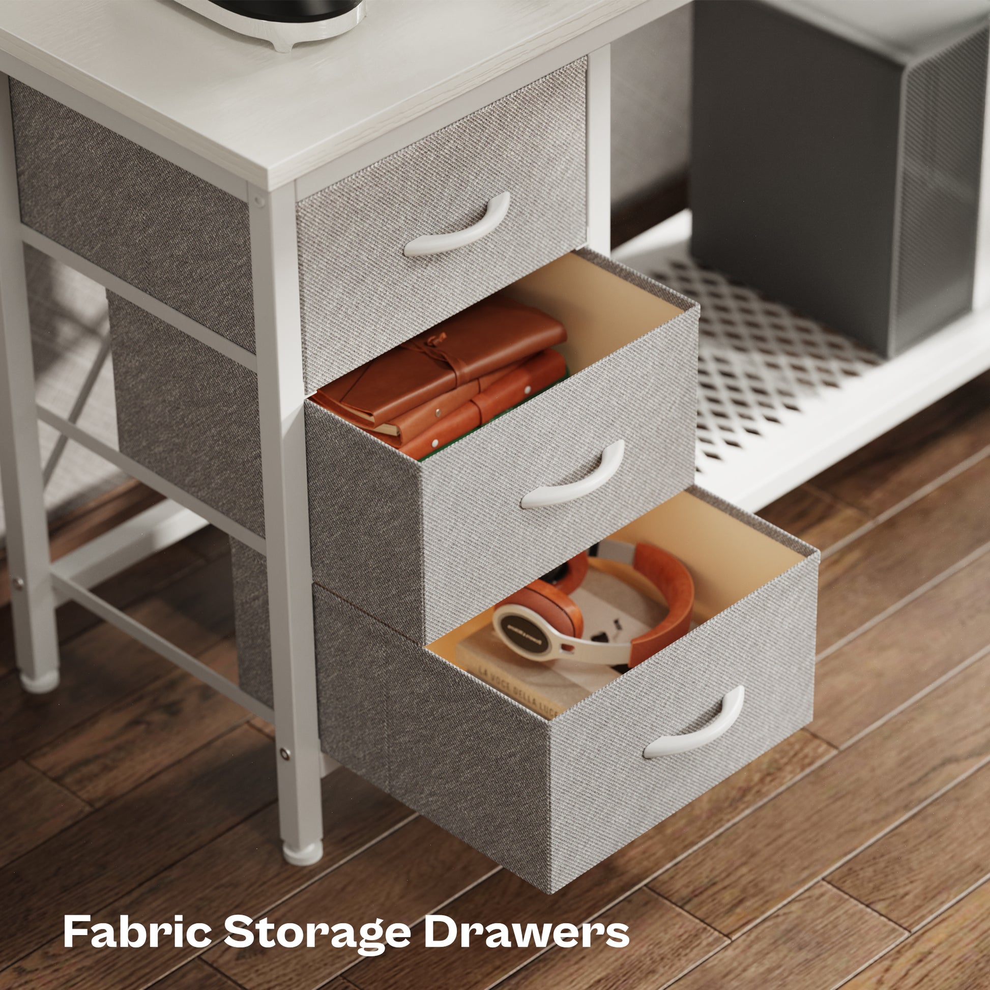 - 【DESK WITH DRAWERS】: 3 fabric drawers helps you organize files, stationery, and personal items, while the grid bookshelf underneath can serve as a CPU stand and offer unlimited storage space for office supplies and documents. The adjustable feet under the l gaming desk ensure stability and protect your desktop items