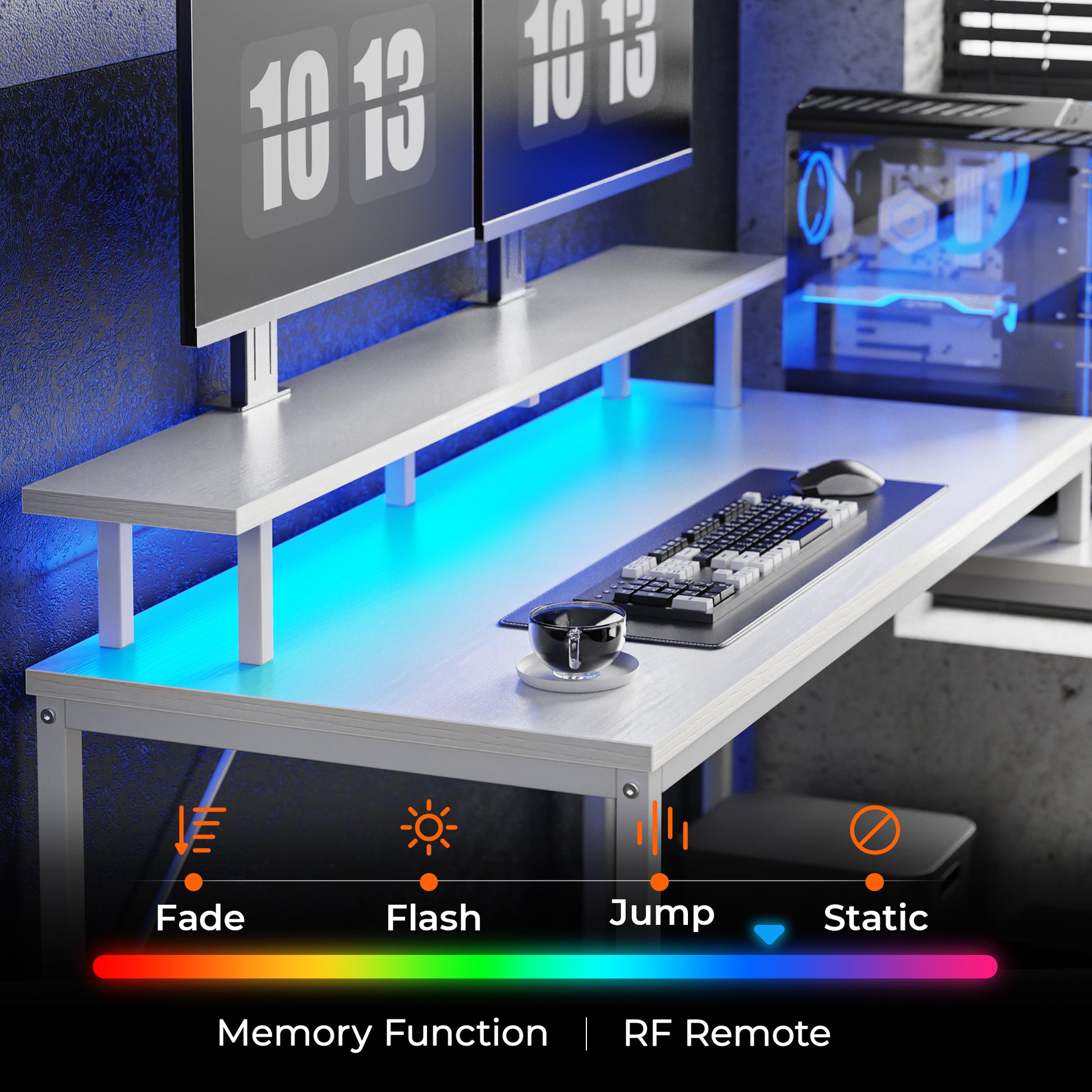 - 【MOOD-LIFTING LED EFFECTS】: Let this gaming desk with led lights create a gaming or home office space infused with colour and life. Use the RF remote to adjust the 22 dynamic modes, 20 changeable colours and 5 brightness levels... Dynamic or static lighting states are flexibly applied to your gaming or working states
