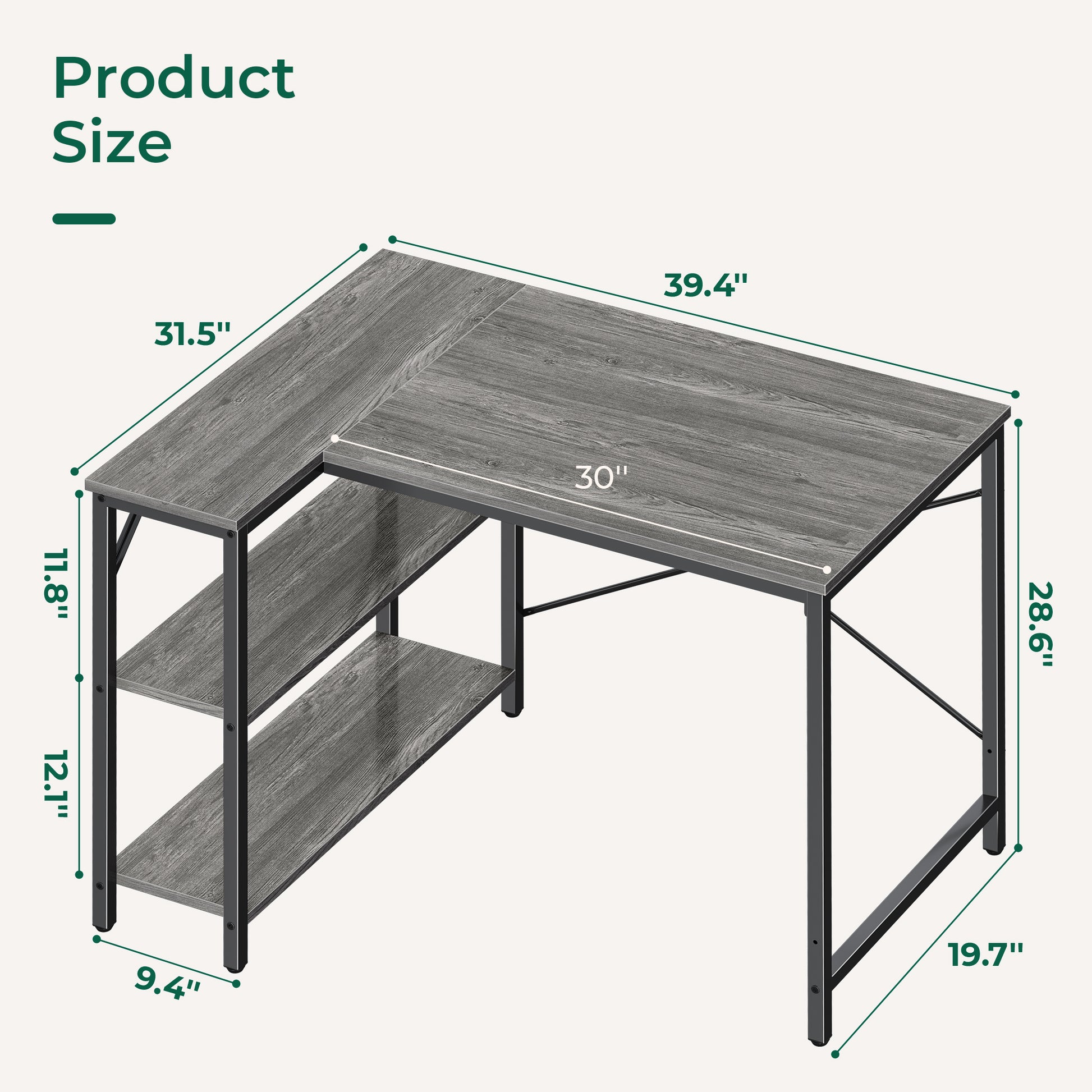 Huuger L Shaped Desk, 39 Inches Computer Desk with Reversible Storage Shelves, Gaming Desk, Corner Desk Home Office Desks, Writing Desk Study Desk with Metal Frame, Gray