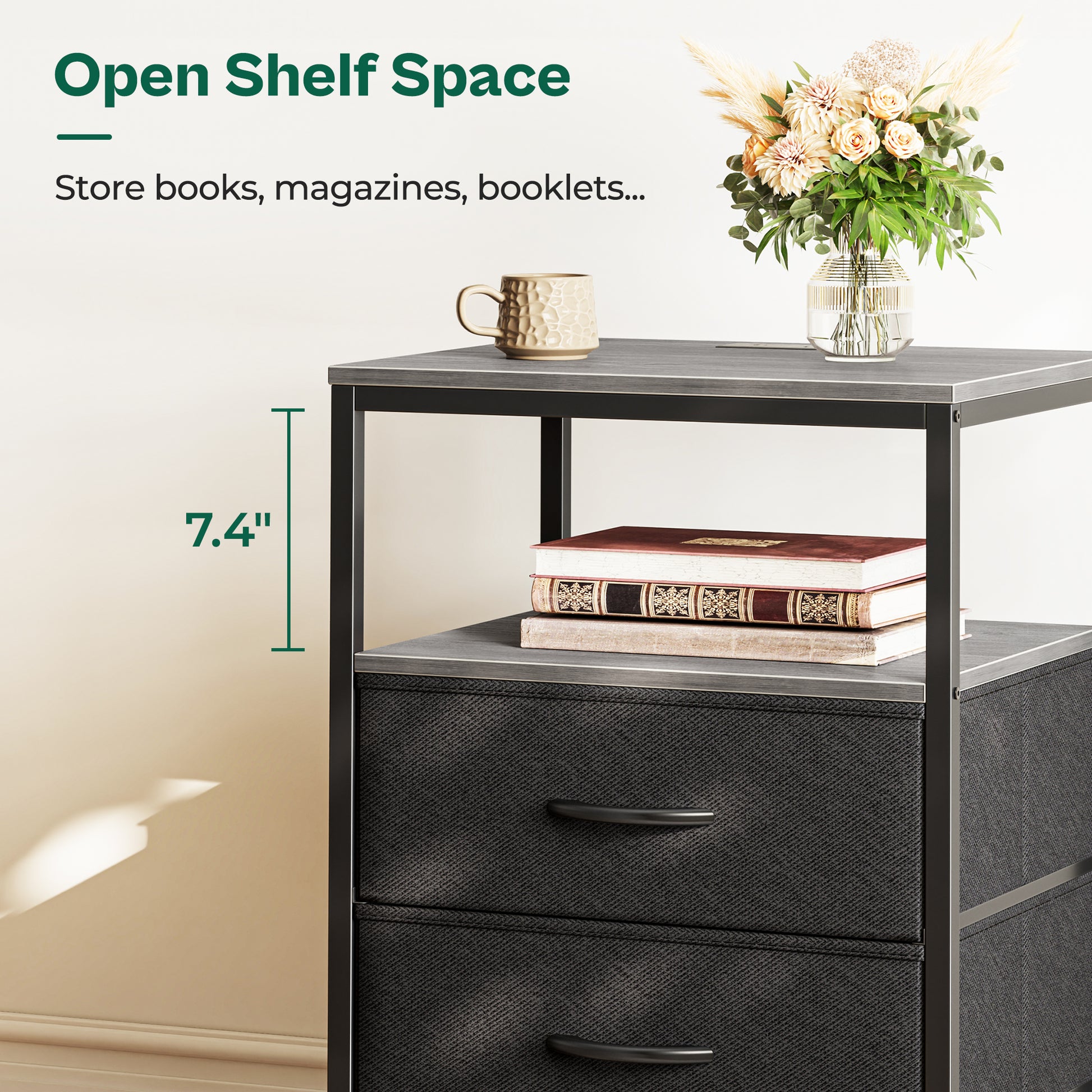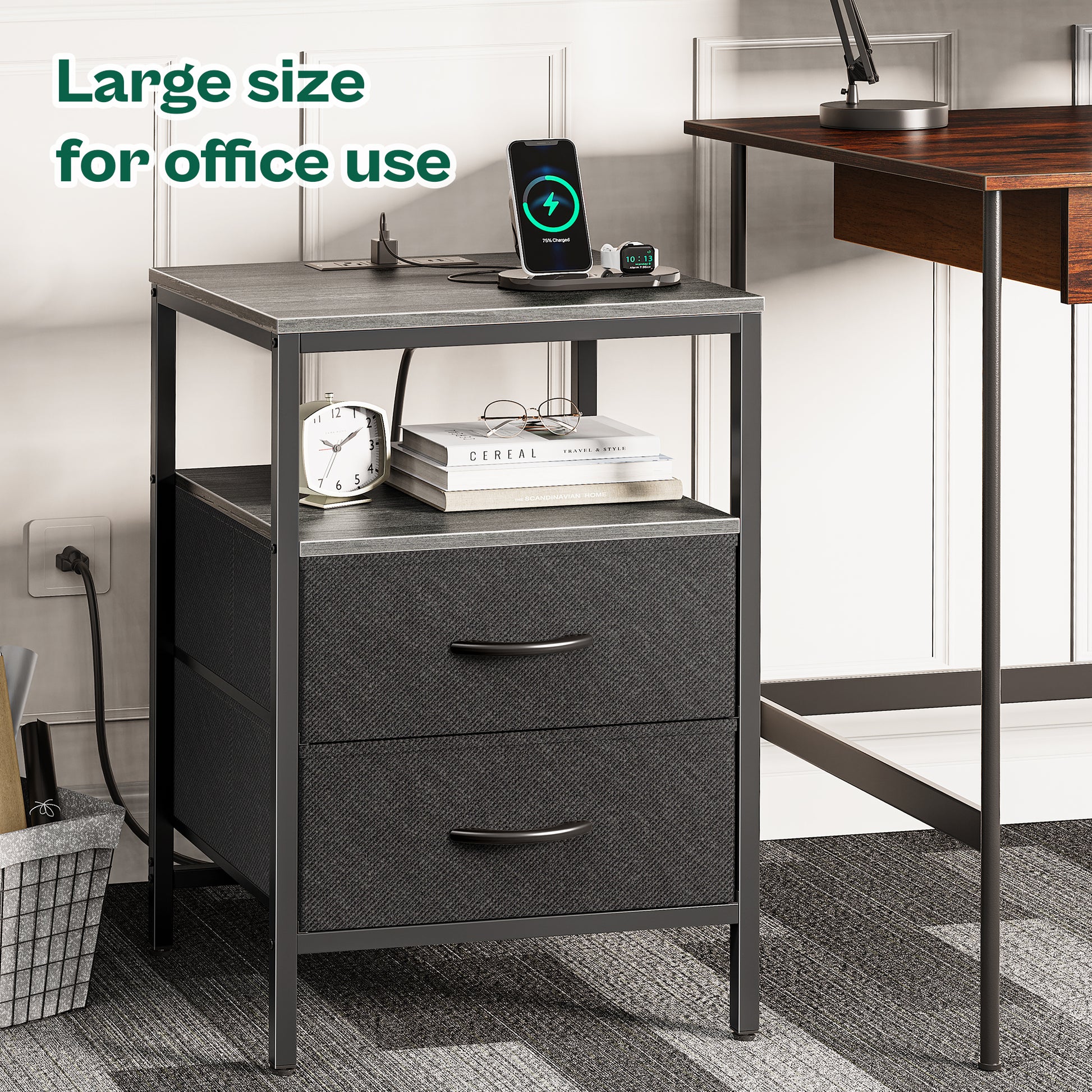Huuger Night Stand with Charger Station, 27.7 Inch Tall Nightstand, Bed Side Table with 2 Fabric Drawers, Fabric Drawer Dresser for Bedroom, Living Room, Grey