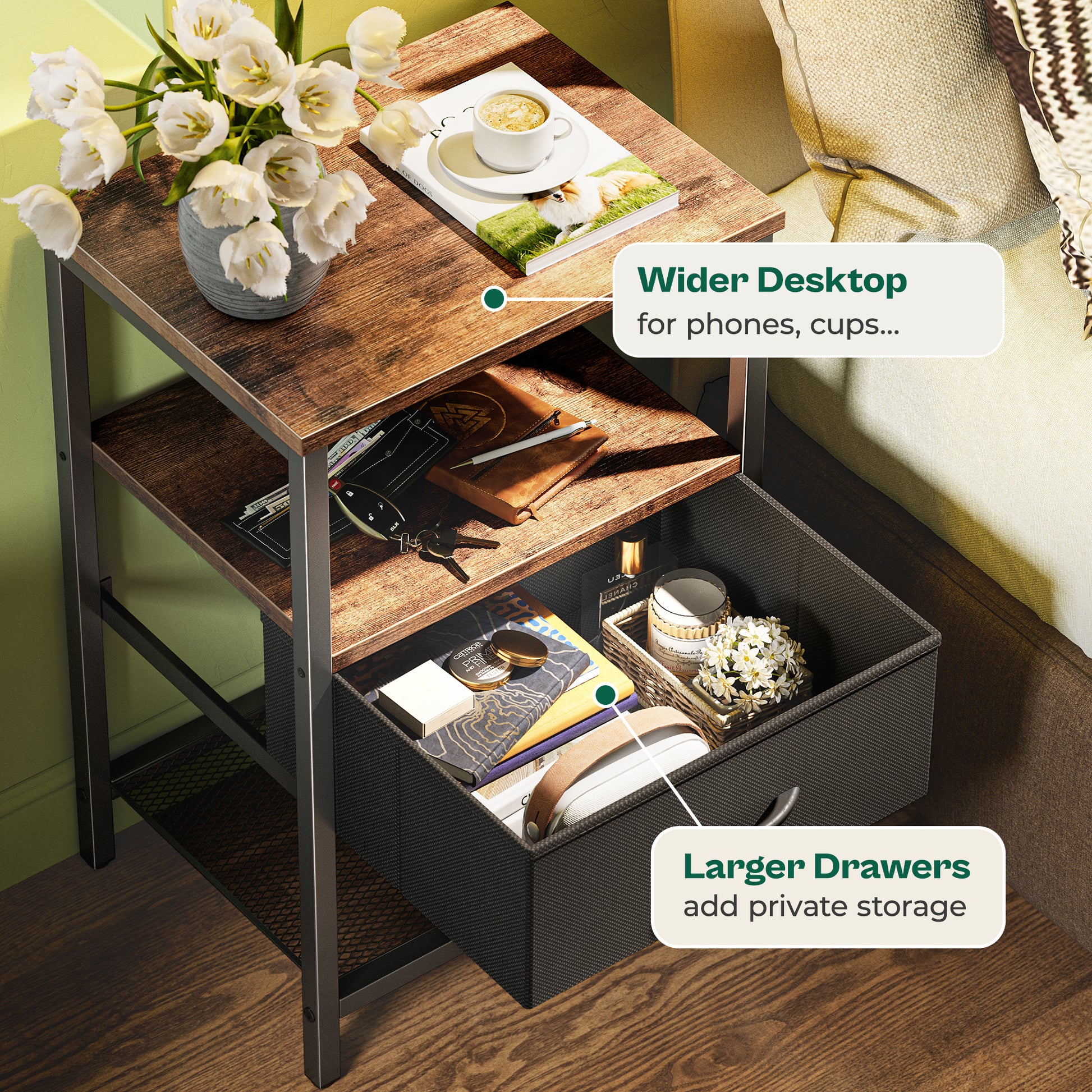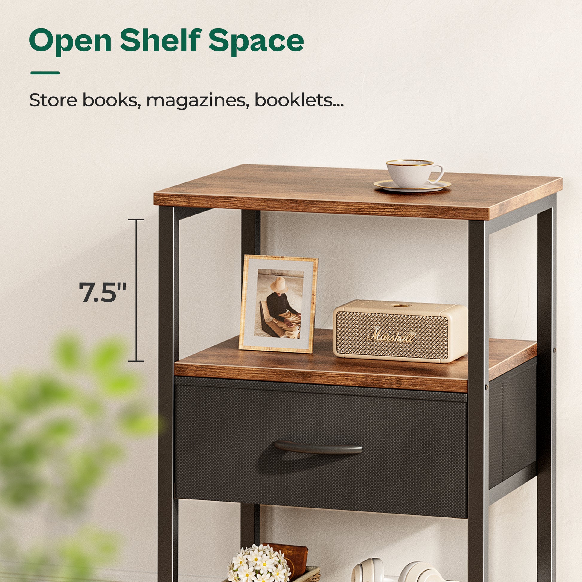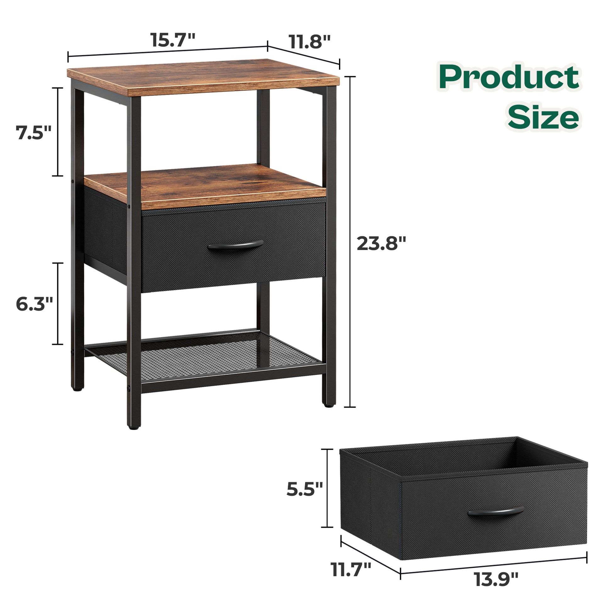 Huuger Night Stand with Fabric Drawer, Side Table with Mesh Shelf, Bedroom Nightstand, Fabric Drawer Dresser, Open Shelf, Metal Frame, Couch Side, Rustic Brown and Black