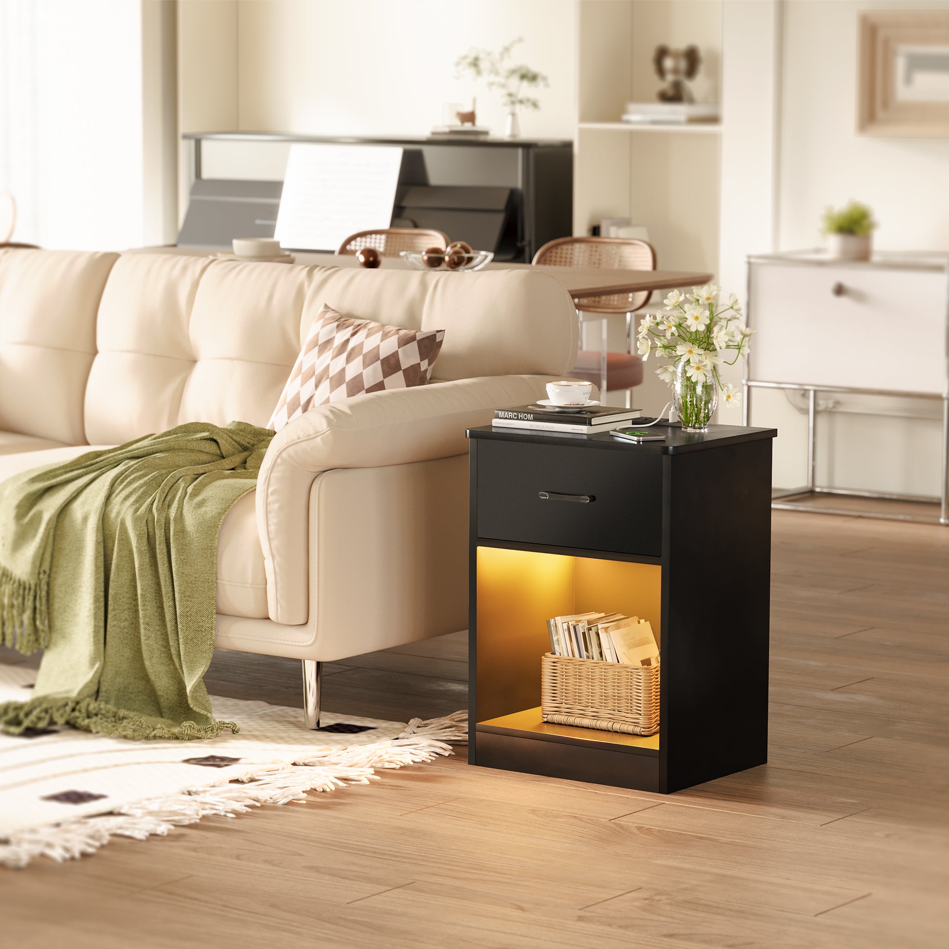 - 【Multiple Use with Quality】Crafted with the solid particle board, this side table with storage is built to last, be it your cosy bedroom bed side table, stylish charging nightstand, or side table in the living room, or office table in the study room, this led nightstand will transform your bedroom with ample storage